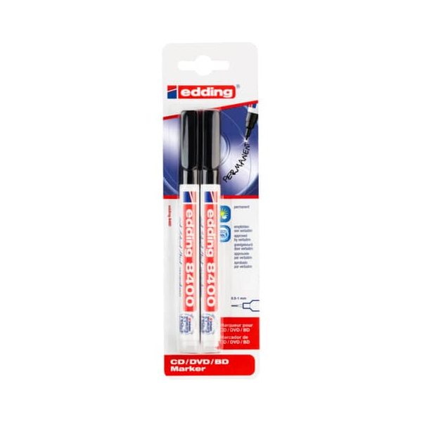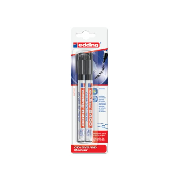 Edding CD-Marker cd/dvd/bd marker, 8400-2-1001, Packung, schwarz, 0,5-1mm Rundspitze
