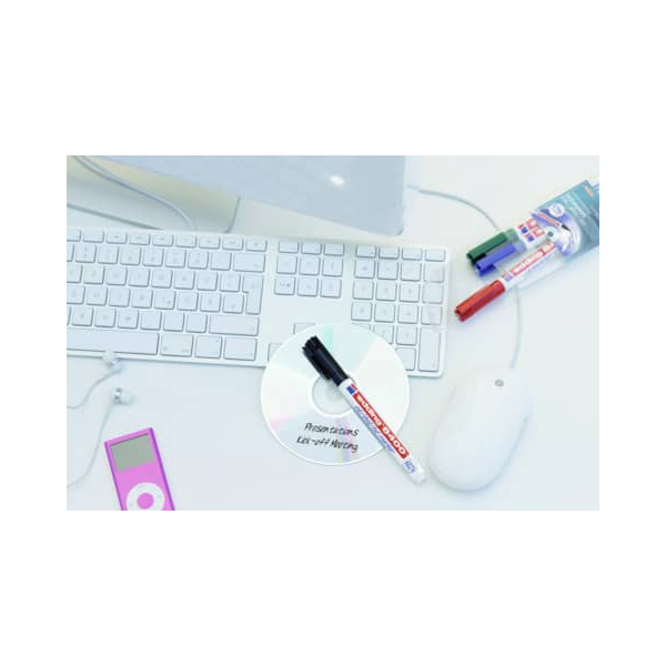 Der CD-Marker cd/dvd/bd marker von Edding ist das ideale Werkzeug zur dauerhaften Beschriftung Ihrer CD-Rohlinge, CD-ROMs und DVDs. Mit seiner permanenten, lichtbeständigen und wischfesten Pigmenttinte auf Wasserbasis schützt er die Datenträgerschicht zuverlässig.
