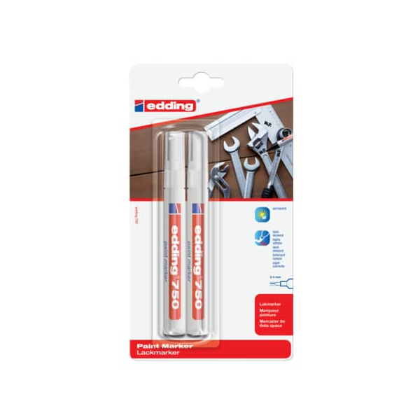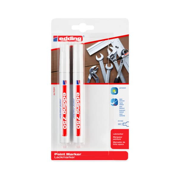 Edding Lackmarker Industrie Blister, 750-2-3049, Blister, weiß, 2-4mm Rundspitze