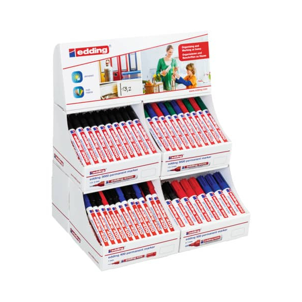 Edding Permanentmarker 3000/500/400, 4-51000, Display, farbig sortiert, sortiert Rundspitze, Keilspitze