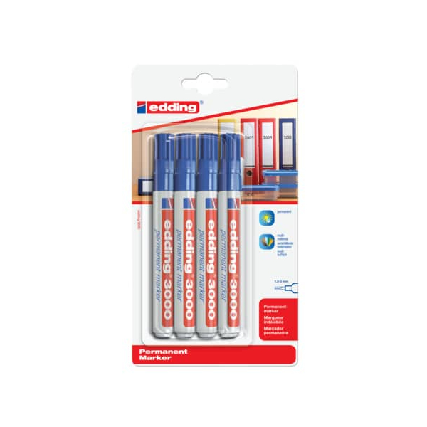 Edding Permanentmarker Permanentmarker, 3000-4-1003, Packung, blau, 1,5-3mm Rundspitze