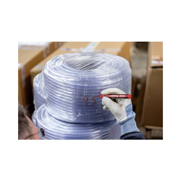 Der Permanentmarker 300 ist mit einer permanenten, geruchsarmen Tinte ausgestattet, die schnell trocknet und in vielen Anwendungen, wie auf Folie, Glas, Holz, Karton, Papier, Kunststoff, Gummi, Leder, Metallen, Porzellan, Stein und Styropor, verwendet werden kann.