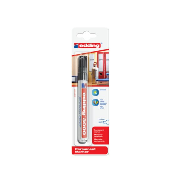 Jetzt Edding Permanentmarker 3000 Organisieren und Beschriften zu Hause, 3000-1-4001, Blister, schwarz, 1,5-3mm Rundspitze günstig kaufen.