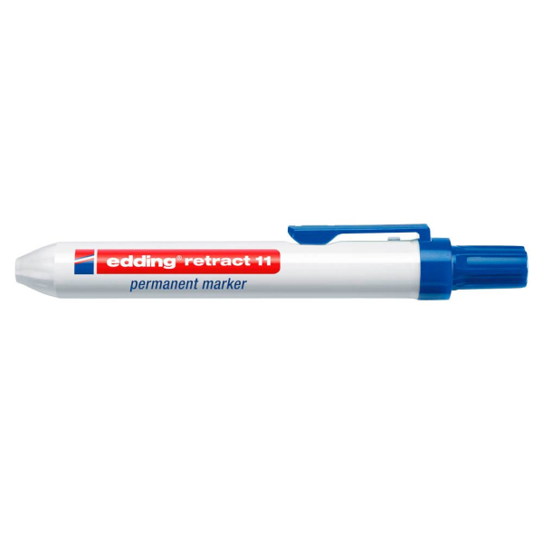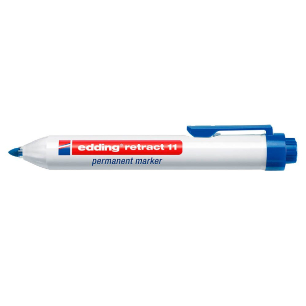 Edding retract 11 4-11003 Permanentmarker nachfüllbar. • Schreibfarbe: blau / blau • wasserfest,lichtbeständig, geruchsarm, schnell trocknend • Strichstärke: 1,5-3mm • Spitzenform: Rundspitze