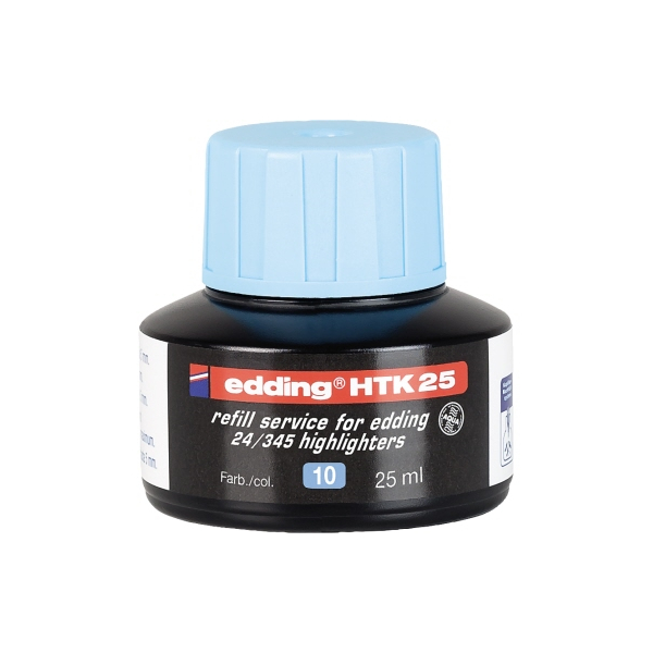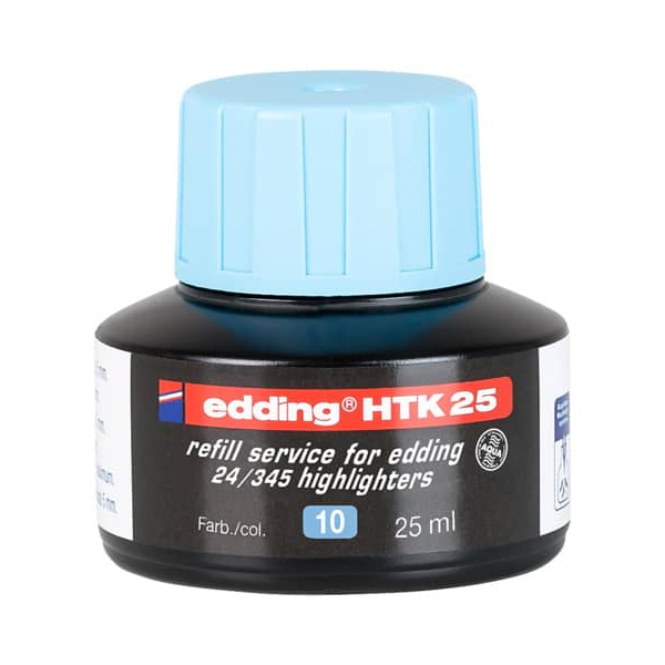 Edding HTK25 4-HTK25010 Textmarker-Nachfüllfarbe. • Schreibfarbe: blau • Inhalt: 25ml • geruchsneutral, lichtbeständig, auf Wasserbasis