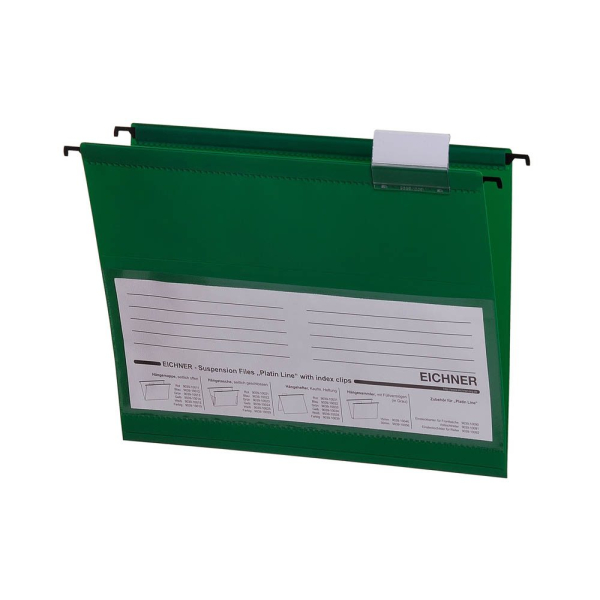 Entdecken Sie die praktischen Hängemappen in einem ansprechenden Grün, Modellnummer 9039-10013, aus der beliebten Platin Line von Eichner. Diese Hängemappen sind ideal, um Ihre Unterlagen ordentlich und übersichtlich zu organisieren.