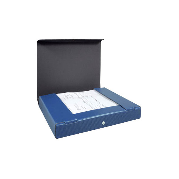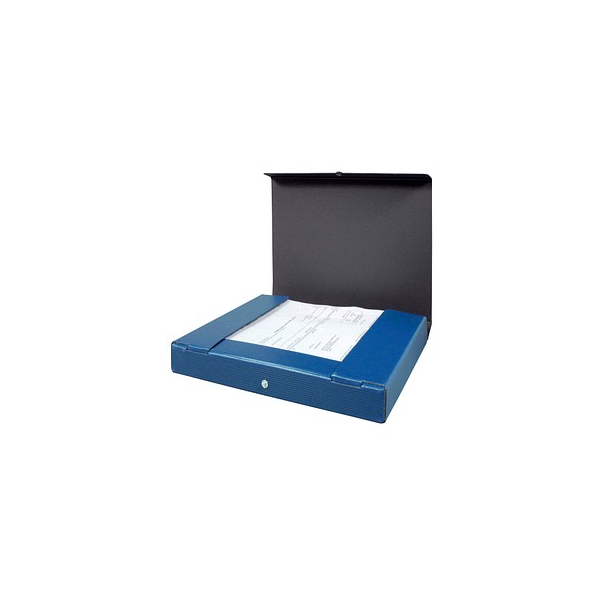 Elba 400001922 Heftbox • Format: DIN A4 • Farbe: blau • Füllhöhe: 4cm • Fassungsvermögen ca.: 380 Blatt • Verschlussart: Druckknopfverschluss • Material: Karton 350 g/m² • Zertifikat: Blauer Engel • 1 x Loseblatt-Ablage • Rückenschild: ohne Rückenschild