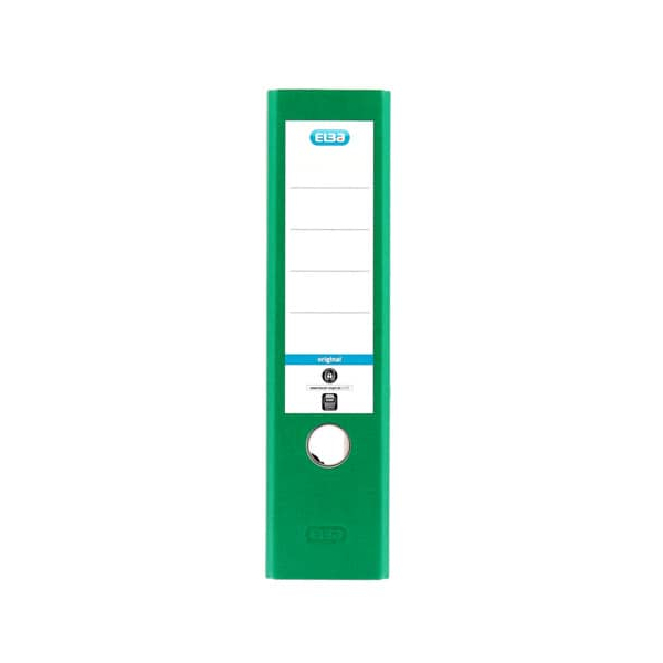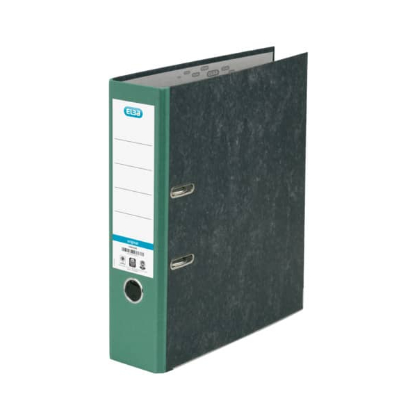 Elba Smart Original 10428 100023248 Ordner • Format: A4 • Farbe: schwarz/grün schwarz marmoriert/grüner Rücken • Rückenbreite: 80mm breit für 600 Blatt • Material: Karton, Papier-kaschiert • Zertifikat: Blauer Engel • Ringmechanik: Hebelmechanik • mit Griffloch • mit Kantenschutz
