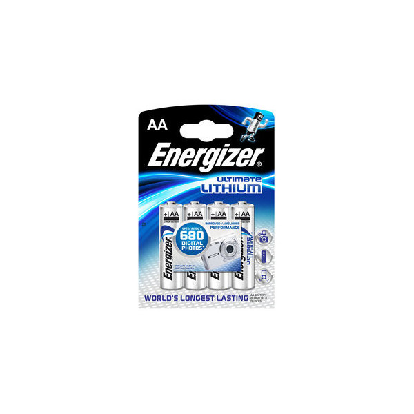 Entdecken Sie die leistungsstarke Batterie Ultimate Lithium von Energizer, die weltweit langlebigsten Batterien für digitale und High-Tech-Anwendungen. Diese Batterie bietet bis zu 7 x längere Betriebsdauer, ideal für Ihre Digitalkamera, mit der Sie bis zu 680 Digitalfotos aufnehmen können – im Vergleich zu nur 90 mit herkömmlichen Standard AA-Alkali-Batterien.