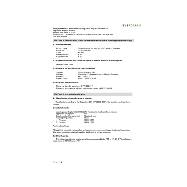 Zögern Sie nicht und investieren Sie in die Qualität des Toner Kompatibel EGTKTK3430E von EVERGREEN. Überzeugen Sie sich selbst von seiner Leistung und bestellen Sie noch heute!