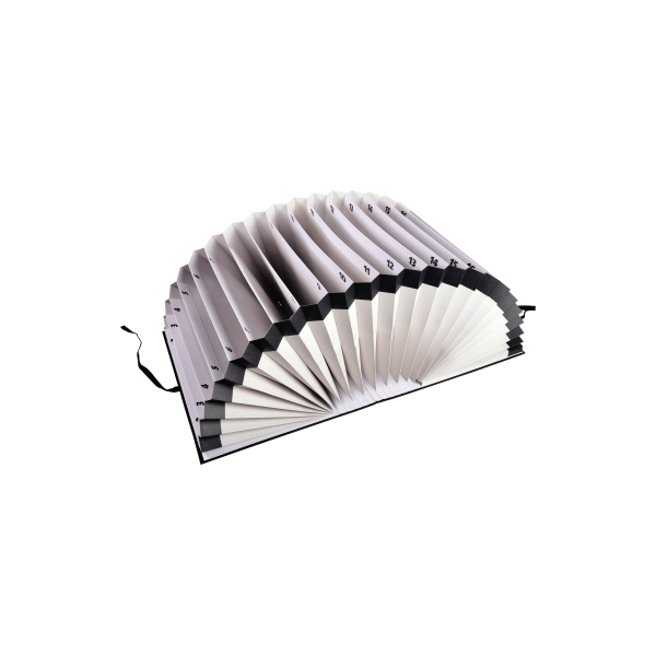 Diese Fächermappe von Exacompta sortiert Ihre umfangreichen Unterlagen auf überschaubare Art und Weise. Auch perfekt für die Ablage, geordnet nach Zahlen 1-31. Wenn Sie ein ganz genaue Ablage, numerisch sortiert, wünschen, dann ist diese Fächermappe von Exacompta genau das Richtige für Sie. Sie hat einen dehnbaren Faltenrücken und ein Band zum Verschließen.