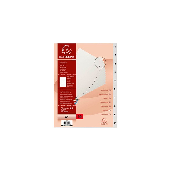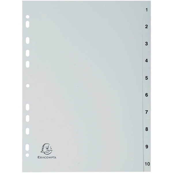 Exacompta Kunststoffregister Forever 1710E, 1 bis 10, A4, graue Taben, 10-teilig