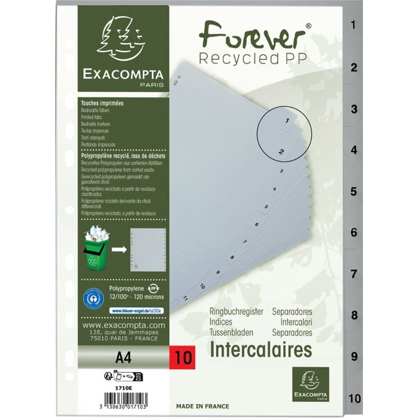 Entdecken Sie das hochwertige Kunststoffregister Forever 1710E von Exacompta – eine praktische und umweltfreundliche Lösung für die Ordnung Ihrer Unterlagen.