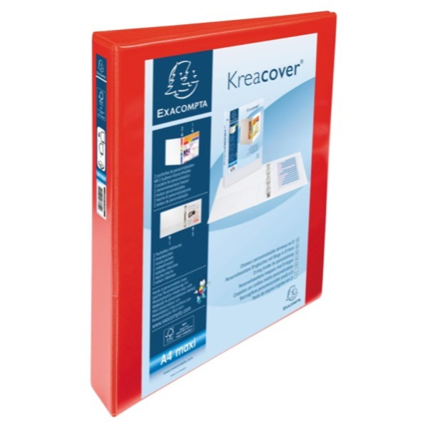 Exacompta Präsentationsringbuch Kreacover 51942RE, A4+ 4 Ringe 30mm Ring-Ø Polypropylen, Karton, 2 Außentaschen, 2 Innentaschen, rot