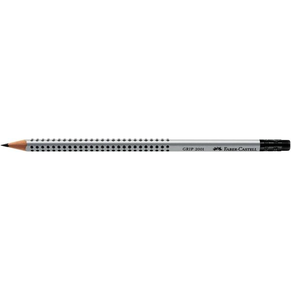 Faber-Castell Bleistift GRIP 2001, 117200, Härte HB, silbergrau, mit Radiergummi