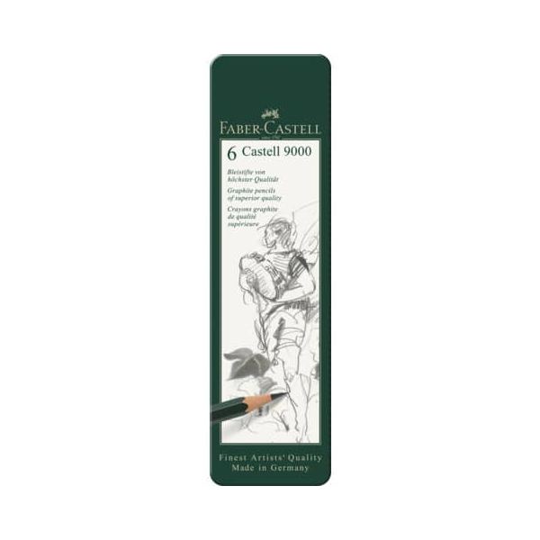 Faber-Castell Bleistift-Set Castell 9000 6er, 119063, dunkelgrün, k.A., HB,B,2B,4B,6B,8B