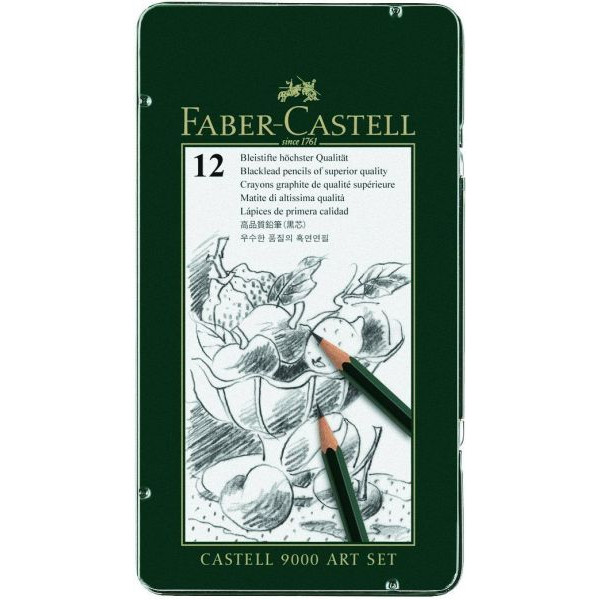 Faber-Castell Bleistift-Set Castell 9000 Art Set, 119065, Härte B;H;HB;2H,2BF,3B,4B,5B,6B,7B,8B, grün