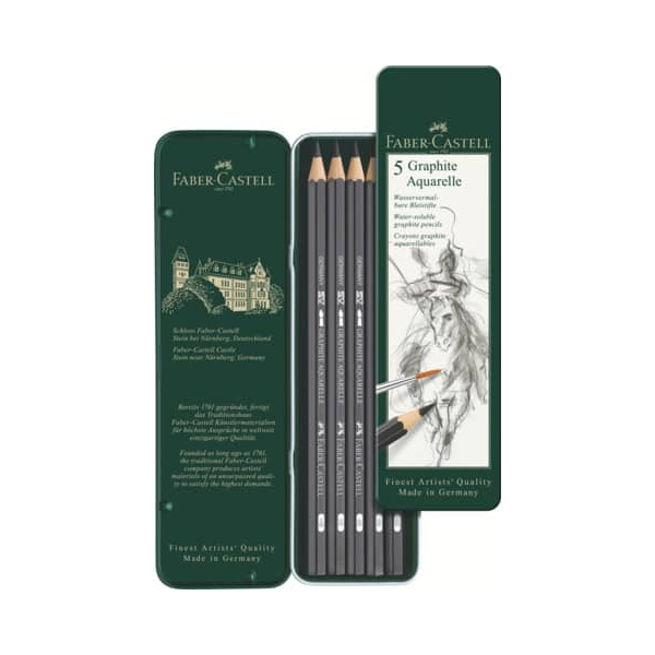 Faber-Castell Bleistift-Set Graphit Aquarelle, 117805, Härte HB,2B,4B,6B,8B, 3,3mm, schwarz