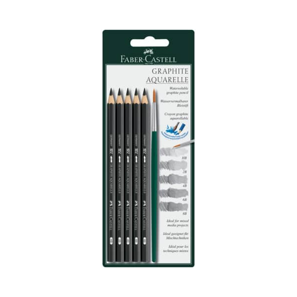 Faber-Castell Bleistift-Set Graphit Aquarelle, 117897, schwarz, 3,3mm, HB,2B,4B,6B,8B