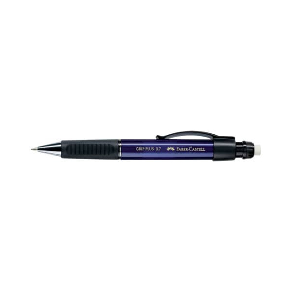 Faber-Castell Druckbleistift GRIP PLUS, 130732, Härte HB, 0,7mm, metallic-blau, mit Radiergummi