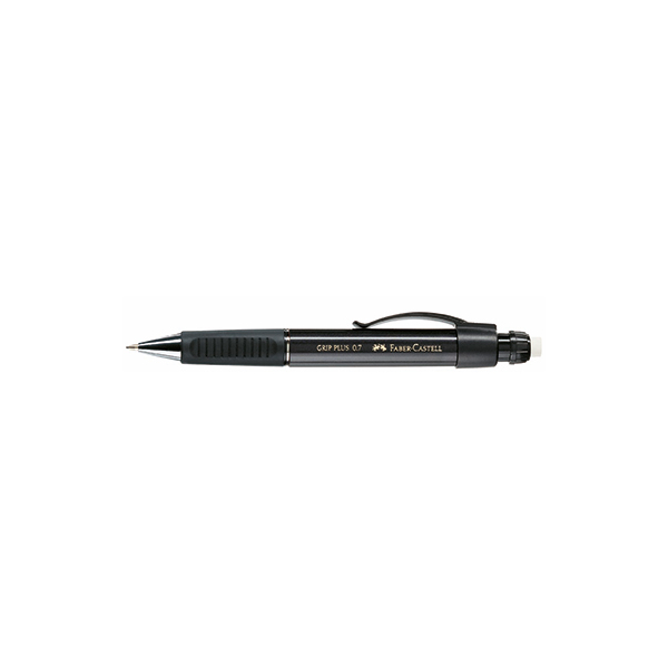 Faber-Castell Druckbleistift GRIP PLUS, 130733, Härte HB, 0,7mm, metallic-schwarz, mit Radiergummi