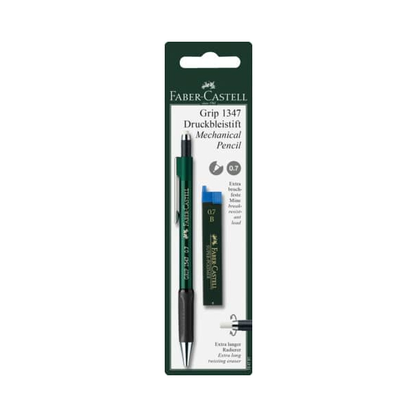 Faber-Castell Druckbleistift-Set GRIP 1347, 134797, Härte B, 0,7mm, grün, mit Radiergummi