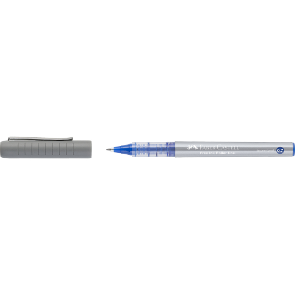 Entdecken Sie den Free Ink Tintenroller in elegantem grau mit einer feinen Strichstärke von 0,7 mm und einer brillanten Schreibfarbe in blau. Dieser hochwertige Tintenroller wird von Faber-Castell hergestellt und vereint die Vorteile von Füller und Kugelschreiber in einem einzigen, stilvollen Produkt.
