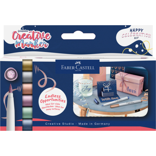 Nutzen Sie die Gelegenheit und bringen Sie Ihre kreativen Ideen zum Leben! Überzeugen Sie sich selbst von der Qualität der Faber-Castell Produkte und kaufen Sie das Kreativmarkeretui 6ST Brush Met.Happy Ce noch heute!