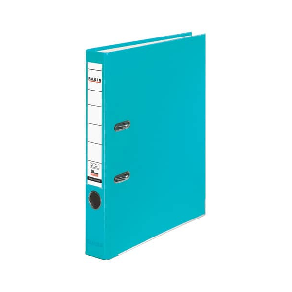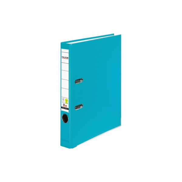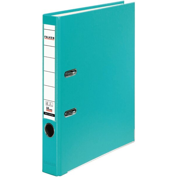 Falken Color Vegan 11286770 Ordner • Format: A4 • Farbe: türkis vollfarbig • Rückenbreite: 50mm schmal für 350 Blatt • Material: Karton, PP-kaschiert • Zertifikat: FSC • Ringmechanik: Hebelmechanik • mit Einsteckrückenschild • mit Griffloch • mit Kantenschutz