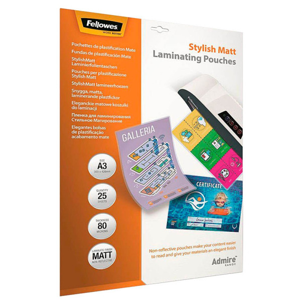 Entdecken Sie die hochwertigen Laminierfolien von Fellowes aus der Serie Admire Stylish Matt. Diese Laminierfolien bieten den perfekten Schutz für Ihre Dokumente, Fotos und vieles mehr. Ob im Büro, in der Schule oder zu Hause – Ihre wichtigen Unterlagen sind mit diesen Folien optimal geschützt.