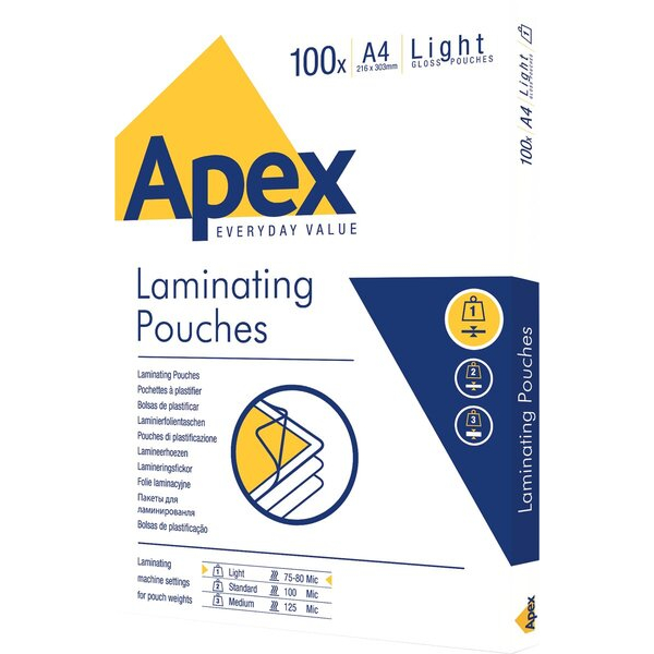 Fellowes Laminierfolien Apex Light 6003201, A4, 216x303mm, 80mic, glänzend