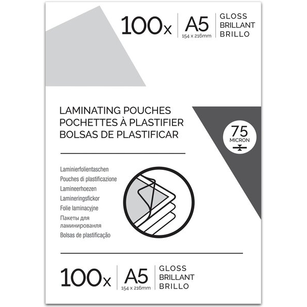 Fellowes Laminierfolien White Lable 6913601, A5, 154x216mm, 80mic, glänzend