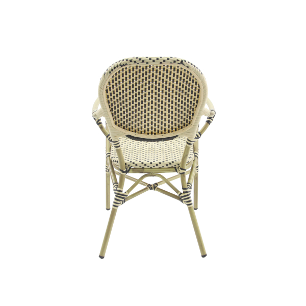 Die Kombination aus Aluminium und der eleganten Polyrattan-Rückenlehne sorgt für eine hohe Stabilität und Langlebigkeit. Genießen Sie entspannte Stunden im Freien mit diesem stilvollen Stuhl.
