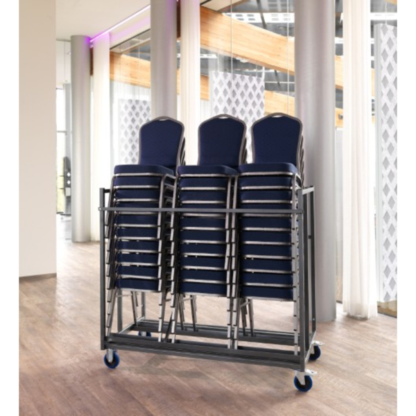 Dieser Transportwagen wurde speziell für den Transport und die Lagerung großer Mengen von Stapelstühlen entwickelt. Die Stühle lassen sich sehr einfach auf den Wagen stellen: