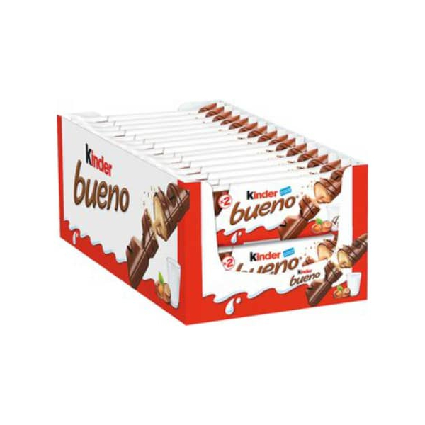 Entdecken Sie den perfekten Snack für zwischendurch mit dem Kinder Bueno 2er-Pack. Knusprige Waffeln gefüllt mit cremiger Milchhaselnusscreme (54 %) und überzogen mit feiner Milchschokolade. Jeder Pack enthält zwei köstliche Riegel a 21,5g – ideal für kleine Genussmomente unterwegs. In der Großpackung mit 30 x 2er-Packs haben Sie immer einen leckeren Snack zur Hand.