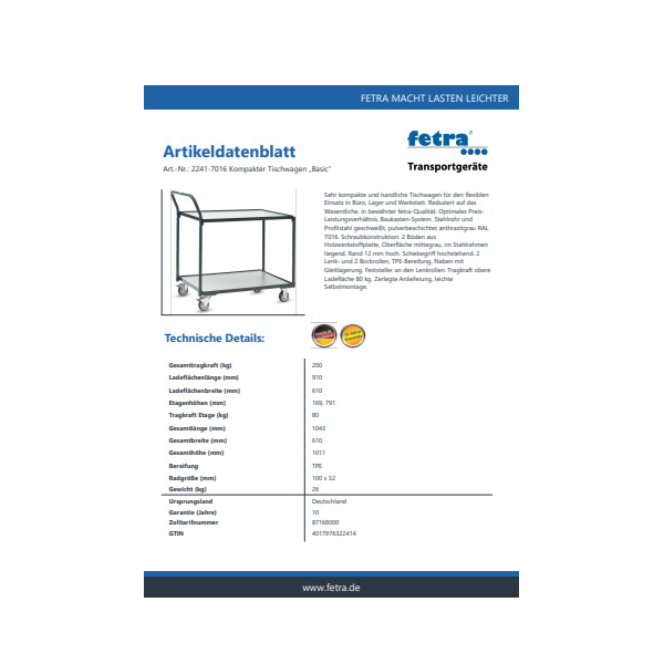 zum Datenblatt| fetra fetra in Transportwagen anzeigen | |