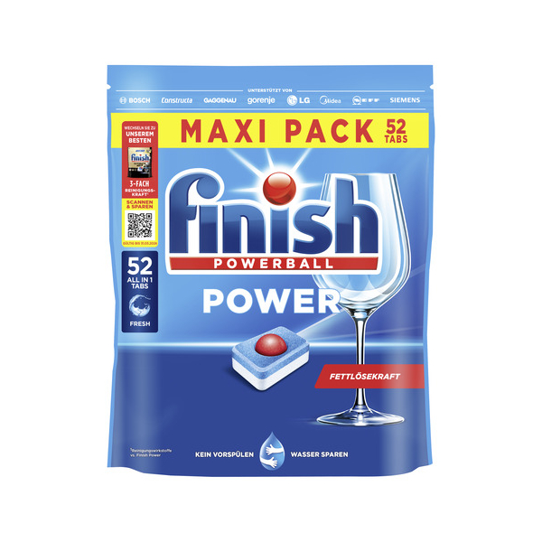Überlassen Sie Ihr schmutziges Geschirr dem Geschirrspüler und der kraftvollen Formel von Finish POWERBALL POWER ALL IN 1 – ganz ohne Vorspülen. Der Finish Power Tab sorgt gemeinsam mit dem integrierten Powerball nicht nur für die tägliche Reinigung, sondern auch für glänzendes Geschirr bereits beim 1. Spülgang.