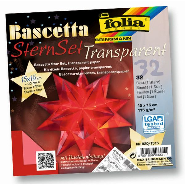 Folia Bascetta Stern Bastelset Ø 20cm 115g 15x15cm weiß/transparent 800/1515 | Folia Bascetta Stern Bastelset Ø 20cm 115g 15x15cm gelb/transparent 814/1515 | Folia Bascetta Stern Bastelset Ø 20cm 115g 15x15cm orange/transparent 840/1515 | Folia Bascetta Stern Bastelset Ø 20cm 115g 15x15cm violett 860/1515 | Folia Bascetta Stern Bastelset Ø 30cm 115g 20x20cm rot/transparent 820/2020 | Folia Bascetta Stern Bastelset Ø 30cm 115g 20x20cm orange 840/2020 | Folia Bascetta Stern Bastelset Ø 30cm 115g 20x20cm gelb/transparent 814/2020 | Folia Bascetta Stern Bastelset Ø 30cm 115g 20x20cm violett 860/2020 | Folia Bascetta Stern Bastelset Ø 30cm 115g 20x20cm weiß/transparent 800/2020 | Folia Bascetta Stern Bastelset Ø 20cm 115g 15x15cm silber/gold 366/1515 |