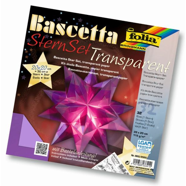 Folia Bascetta Stern Bastelset Ø 30cm 115g 20x20cm rot/transparent 820/2020 | Folia Bascetta Stern Bastelset Ø 30cm 115g 20x20cm orange 840/2020 | Folia Bascetta Stern Bastelset Ø 30cm 115g 20x20cm gelb/transparent 814/2020 | Folia Bascetta Stern Bastelset Ø 30cm 115g 20x20cm weiß/transparent 800/2020 | Folia Bascetta Stern Bastelset Ø 30cm 115g 20x20cm rot/gold 326/2020 | Folia Bascetta Stern Bastelset Ø 30cm 115g 20x20cm silber/gold 366/2020 | Folia Bascetta Stern Bastelset Ø 20cm 115g 15x15cm violett 860/1515 | Folia Bascetta Stern Bastelset Ø 20cm 115g 15x15cm weiß/transparent 800/1515 | Folia Bascetta Stern Bastelset Ø 20cm 115g 15x15cm rot/transparent 820/1515 | Folia Bascetta Stern Bastelset Ø 20cm 115g 15x15cm gelb/transparent 814/1515 |