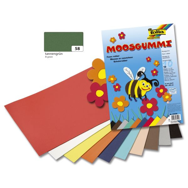 Entdecken Sie das vielseitige Moosgummi von Folia in der Farbe tannengrün (Artikelnummer: 231058). Mit einer Größe von 20x29 cm und einer Stärke von 2 mm ist dieses Material perfekt geeignet für kreative Bastelprojekte. Moosgummi lässt sich leicht schneiden und kleben, was es zu einem idealen Material für Bastelarbeiten, auch mit Kindern, macht.