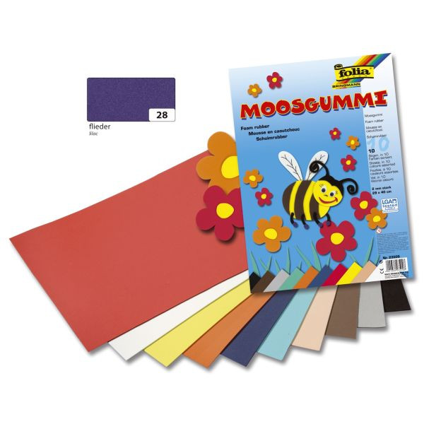 folia präsentiert Ihnen das Bastelmoosgummi 29x40cm 2mm stark in der Farbe flieder (Artikelnummer 23528).