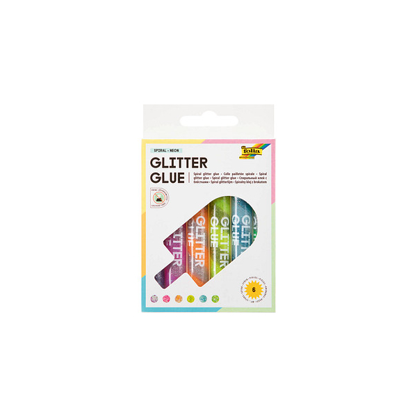 Folia Glitterkleber 576 Glitter Glue SPIRAL NEON, 6x 10,5ml, permanent