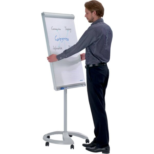Die inklusive Ablageschale sorgt dafür, dass Ihre Utensilien immer griffbereit sind. Dank der Schnellwechselblockhalterung können Sie alle gängigen Flipchartblocks mühelos anbringen und entfernen. Der glasfaserverstärkte Kunststoff-Rundfuß, der eine stabile Basis (57,5 x 62,5 cm) bietet, ermöglicht eine mobile Nutzung des Flipcharts. Zudem ist das Gerät mit stufenloser Höhenverstellung von 180 bis 195 cm ausgestattet, sodass Sie es optimal an Ihre Bedürfnisse anpassen können.