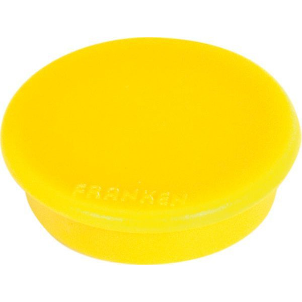 Die Franken Haftmagnete HMS3604 sind runde Magnete mit einem Außendurchmesser von 38mm und einer Höhe von 7mm. Sie sind in der Farbe gelb erhältlich und haben eine Haftkraft von 2500g. Die Haftmagnete sind besonders praktisch für bis zu 20 Blatt DIN A4 Papier mit einem Gewicht von 80g/qm.