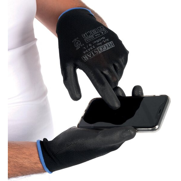 • Handschuhgröße: 8/M • Beschichtung: PU • Trägermaterial: Nylon • Klasse: CAT II • erfüllte Normen: EN 388 3121X, EN ISO 21420:2020 • touchscreenfähig • Abriebstufe 3