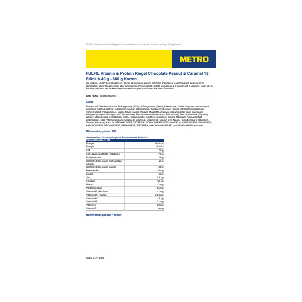 Proteinriegel 15x40g Peanut & Caramel 5391532122144 FULFIL 63662