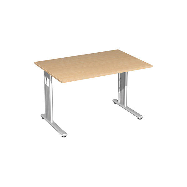 manuell höhenverstellbarer Schreibtisch Geramöbel Flex S-617102-BS • Höhe: 68-82cm • Platte: buche, 120x80cm (BxT), rechteckig, links/rechts montierbar, verkettbar, Dreischicht-Feinspanplatte mit Melaminharzbeschichtung, 25mm • Gestell: silber, C-Fuß-Gestell, Stahl, pulverbeschichtet • ohne Rollen • Gewicht: 35kg • Anlieferung: zerlegt