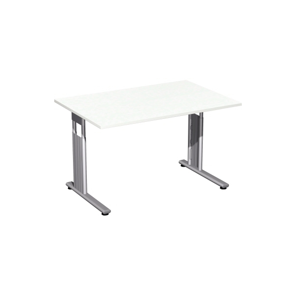 Geramöbel Schreibtisch Flex, manuell höhenverstellbar, 72cm (H), 120x80cm (BxT), rechteckig, weiß / silber