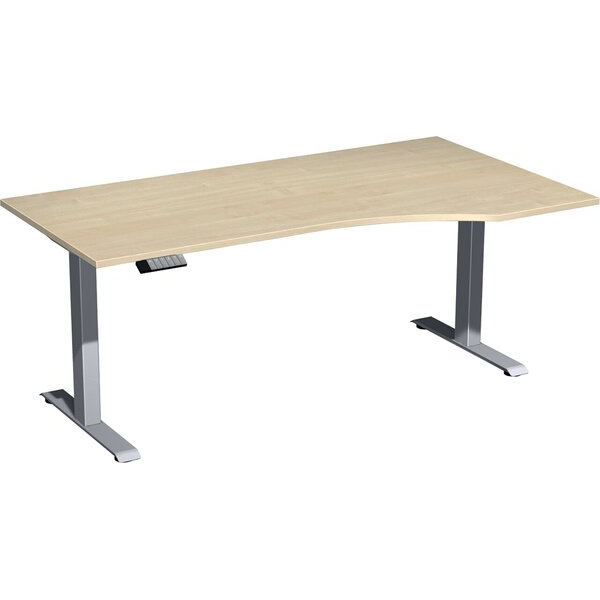 Geramöbel Sitz-Steh-Schreibtisch Elektro Elevate Basic, elektrisch höhenverstellbar, 73-123cm (H), 180x100cm (BxT), Freiform, ahorn / silber