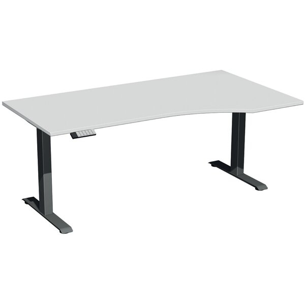 Sitz-Steh-Schreibtisch Elektro Elevate Basic, elektrisch höhenverstellbar, 73-123cm (H), 180x100cm (BxT), Freiform, lichtgrau / anthrazit